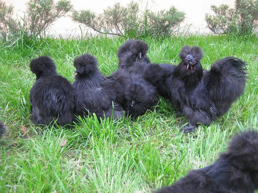 Ponadto kurczaki jedwabne mają ciekawe fryzury, które częściowo zakrywają oczy. Ptaki te całkowicie nie są przystosowane do dzikiej przyrody, słabo widzą i nie orientują się w przestrzeni.