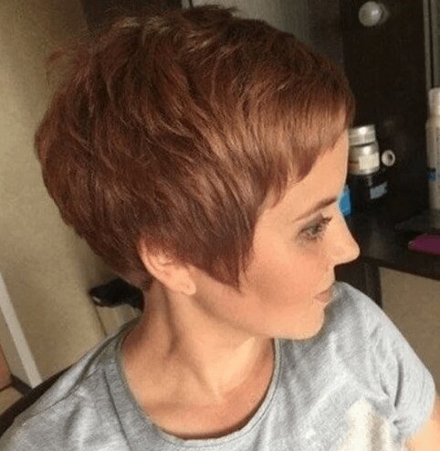Aby dodać atrakcyjności, zdecydowano się na koloryzację włosów na rudy kolor z cienkimi jasnymi pasmami, które podkreślają główny kolor.
