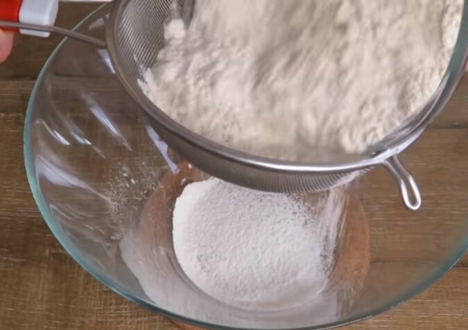 3. Gdy kandyzowane owoce są moczone w soku, zacznij robić ciasto. Mąkę przesiej do osobnej miski. Jest to bardzo ważne w przypadku ciasta drożdżowego, ponieważ podczas przesiewania mąka jest nasycana tlenem, dzięki czemu ciasto staje się miękkie i przewiewne.