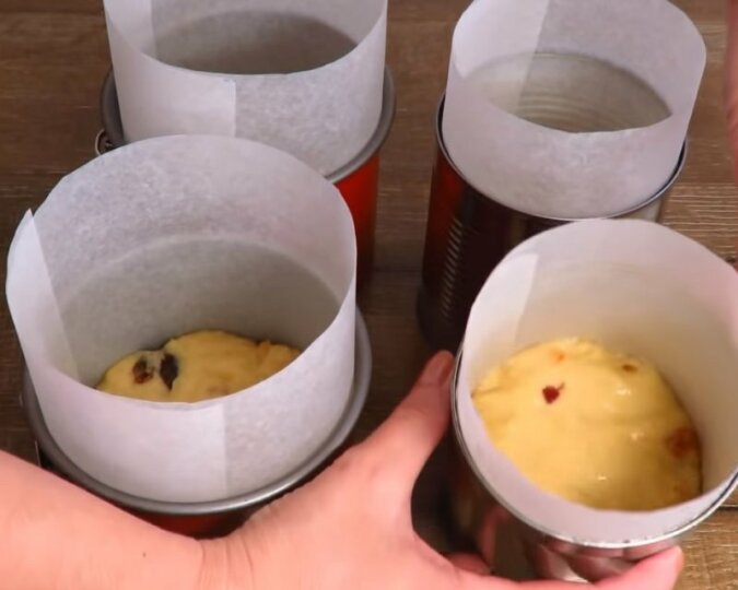8. Zanim wlejesz ciasto do foremek, możesz je trochę zagnieść. Aby ciasto nie przywierało do dłoni, posmaruj je olejem i wypełnij foremki. Ciasta należy dodać tyle, żeby zajmowało trochę mniej niż połowę foremki. Aby ciasto wypełniło cały pojemnik, foremki odstawiamy na godzinę w ciepłe miejsce.