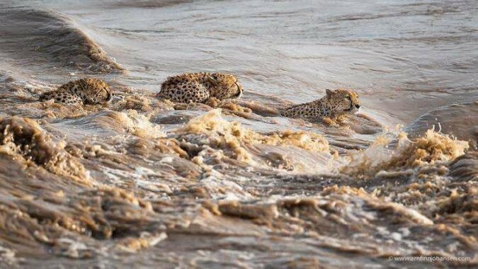 „Zwierzęta długo chodziły w górę i w dół rzeki, szukając miejsca na przejście na drugą stronę. Z powodu silnego prądu było to naprawdę niebezpieczne. Ponadto rzeka ta jest domem dla krokodyla nilowego, dla którego gepard może być łatwym posiłkiem"