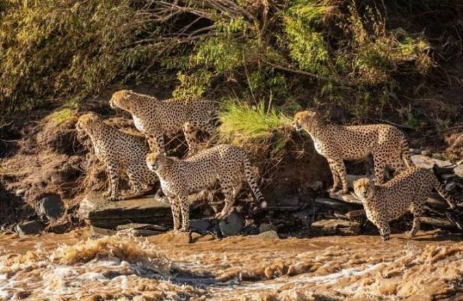 Obserwatorzy przebadali rezerwat narodowy Masai Mara w Kenii. Nagle znaleźli rodzinę gepardów gromadzącą się nad brzegiem rzeki. Rzeka miała silny nurt, ale zwierzęta nie przejmowały się tym.