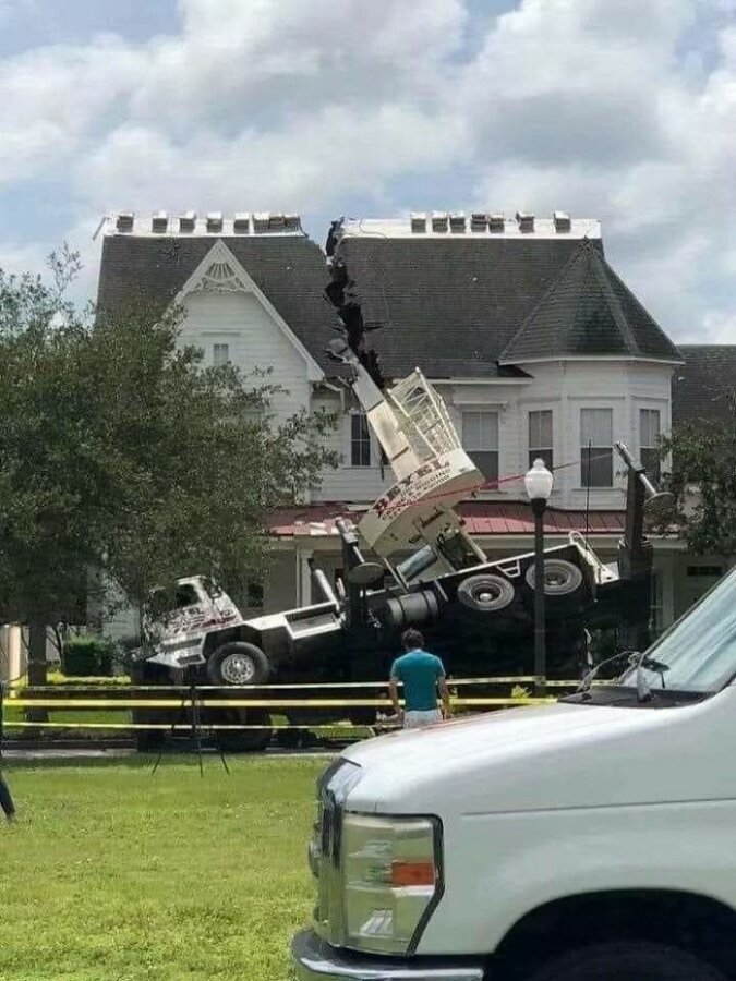 Zapomnieli wysunąć pewną część dźwigu który wywrócił się