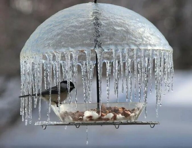 Fotograf odkrył pokryte lodem wiosenne schronisko dla ptaków.