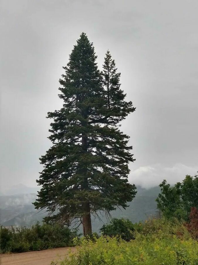 Majestatyczna sosna wyhodowałą nowe drzewo na jednej ze swoich gałęzi, zdecydowana nie puszczać drzewa na ziemię.