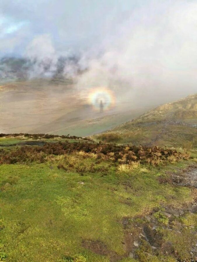 Kulista tęcza, wewnątrz której znajdują się zarysy sylwetki człowieka.
