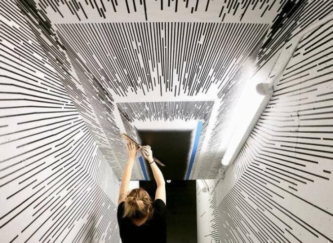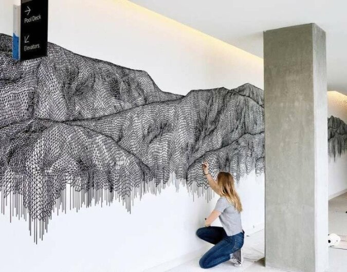 Prace dziewczyny wykraczają również poza mieszkania i biura, na przykład jest to ściana o wymiarach 9 na 20 metrów.