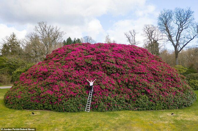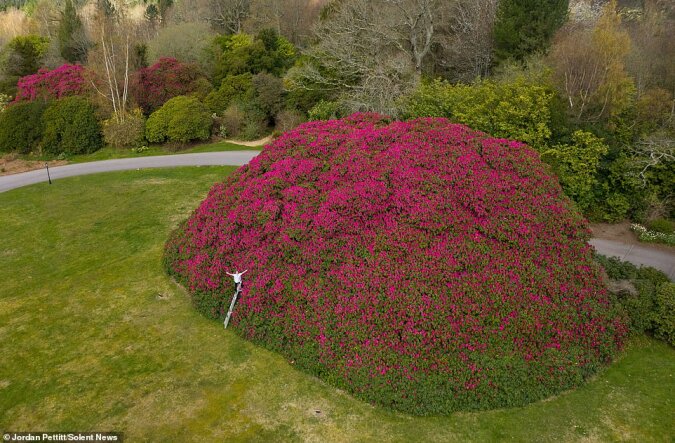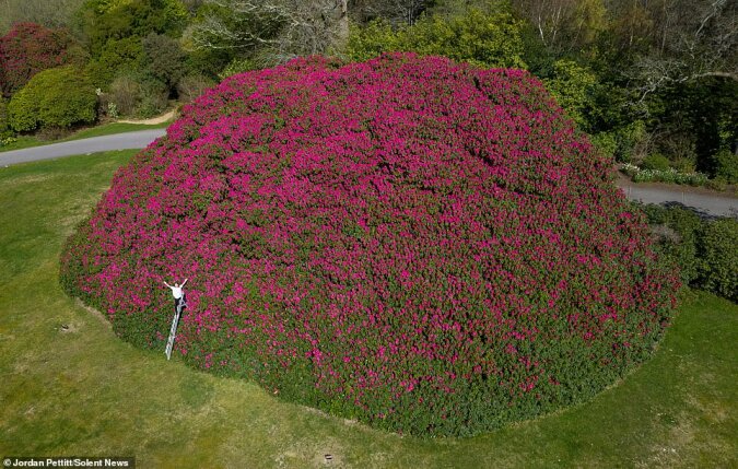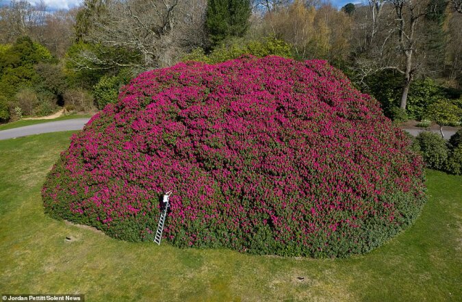 Właściciele South Lodge w Horsham w West Sussex z radością witają zniesienie ograniczeń i czekają na gości. Powód jest bardzo ważny – rozkwitł duży różanecznik! Jest tak duży, że piętrowy autobus londyński może łatwo schować się w środku i nadal będzie wystarczająco dużo miejsca. Wyjątkowy krzew!
