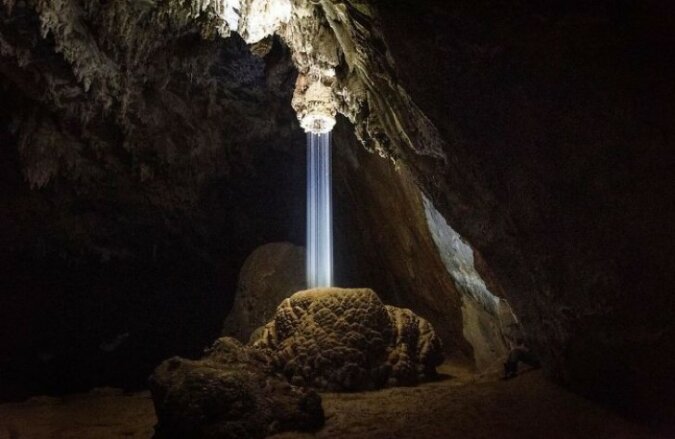 Dzieło rąk natury, a nie człowieka – słup światła przenika do jaskini