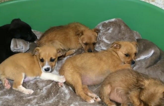 Szczenięta zostały przebadane przez weterynarza i obecnie znajdują się w schronisku. Niemowlęta otrzymają szczepionki i leczenie przeciwko pasożytom, a wtedy znajdą kochających właścicieli.