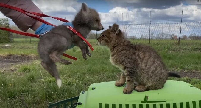 Po tygodniu pobytu lisa w ośrodku, obsługa zaczęła go wyprowadzać na spacery, z czego maluch był zadowolony. Na ulicy chcieli przedstawić zwierzę kotkowi, ale mały lisek nie był zainteresowany taką przyjaźnią, natomiast podążał cały czas za ludźmi. Dwa tygodnie później lis został przedstawiony psu i zwierzęta się zaprzyjaźniły. Biegały, bawiły się. Regularne jedzenie, spacery na świeżym powietrzu, zabawa i opieka sprawiły, że maleńkie, słabe zwierzątko zmieniło się w uroczego lisa w ciągu zaledwie jednego miesiąca.