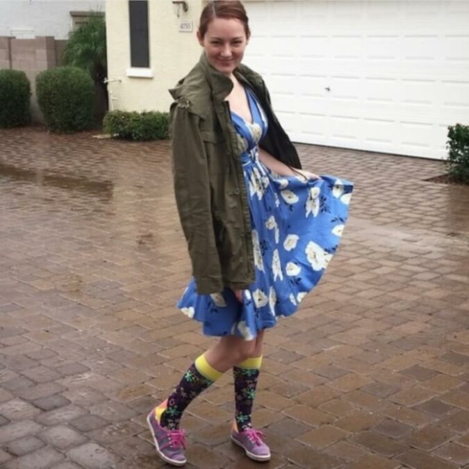 „Wszystko zaczęło się od skarpet. Powiedział, że po prostu kocha kwiaty. Suknia została wybrana według tej samej zasady. Był zachwycony tymi butami, a potem zaproponował, żebym założyła kurtkę na wierzch. Czułem się trochę niezręcznie w tych ubraniach, ale ku mojemu zdziwieniu nikt nie patrzył na mnie dziwnie.”
