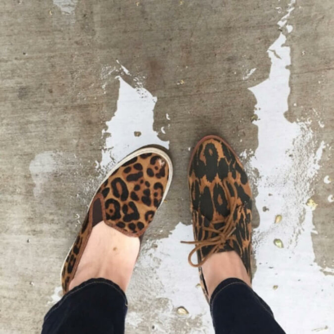 „Na początku było to trochę trudne. Wybrał dla mnie trzy koszulki naraz i to wszystko. Później przekonałam go, że nie mogę wyjść bez spodni i skończył robotę. Najprawdopodobniej nie zauważył, że te buty były z różnych par ”.