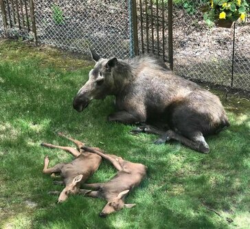 Na początku czerwca mieszkaniec Alaski, Roland Rydstrom, był świadkiem bardzo niezwykłego obrazu. Kiedy obudził się rano i rozsunął zasłony, znalazł na podwórku samicę łosia z dwoma młodymi. Zwierzęta się rozłożyły na trawie, opalając się.