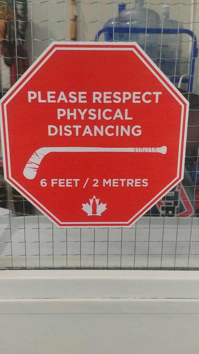 Jak w Kanadzie mierzą odległość podczas pandemii - kijem hokejowym