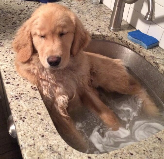 Psy nie lubią się myć, ale leżeć w wannie jak najbardziej!