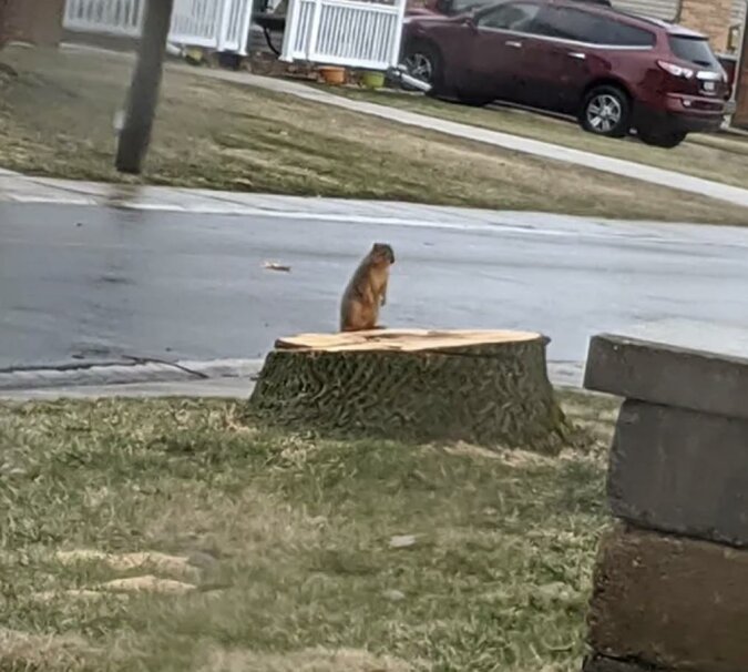 Ta wiewiórka pewnie źle wylądowała po upadku z dachu. A potem po prostu wstała i gdzieś poszła.