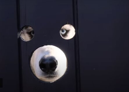 Pomysł wycięcia w bramie dziur, które wyglądały jak głowa Myszki Miki, przyszedł do Andy'ego, gdy zauważył, że jego psy wystawiają pyszki pod płot, żeby zobaczyć, co dzieje się na ulicy. Według mężczyzny jego zwierzaki mają bardzo ciekawe usposobienie. Nie dręczył husky, które pękały z chęci obserowania sąsiadów, a wkrótce w ogrodzeniu pojawiły się „stanowiska obserwacyjne” dla czterech psów.