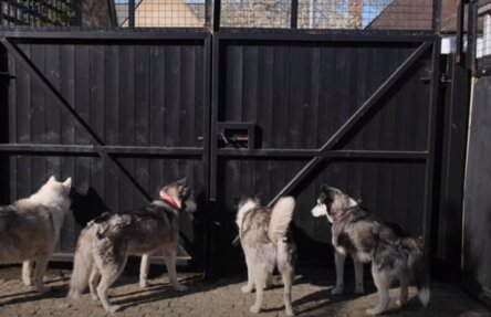 Andy powiedział brytyjskiej stronie internetowej Metro.co.uk, że jego husky uwielbiają kontaktować się z przechodniami. Jeśli ktoś pojawił się na ulicy, cztery nosy natychmiast ustawiają się w jednej linii!