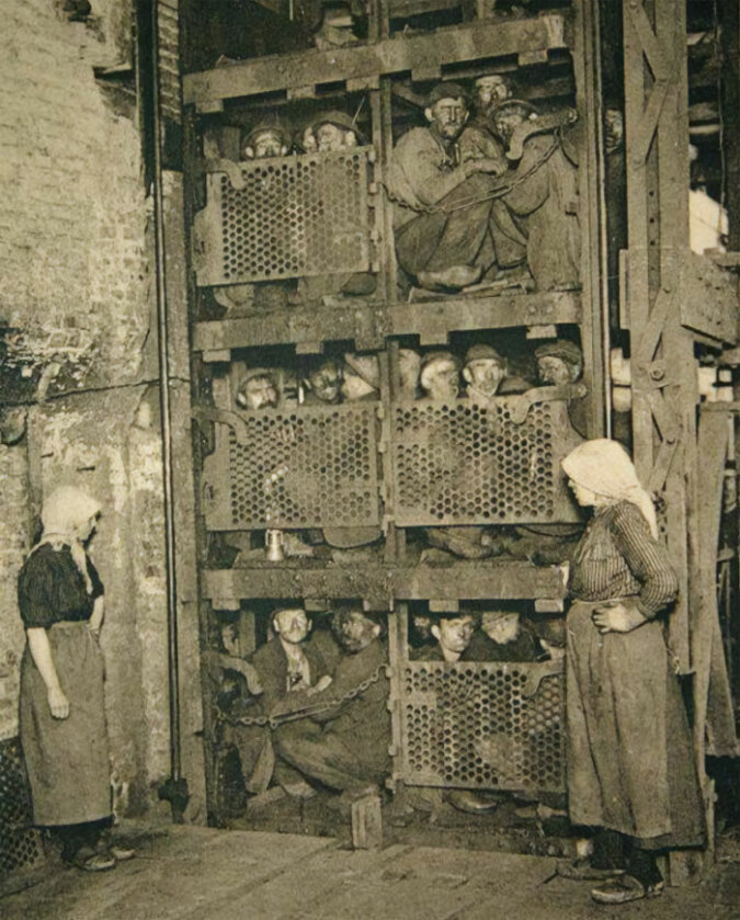W 1920 roku w Belgii w takich klatkach górnicy byli transportowani do kopalni