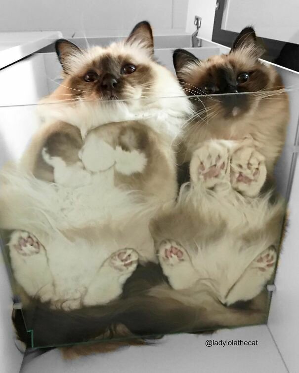 Wszyscy miłośnicy kotów wiedzą, że koty nie mogą pozować na żądanie. To nie są psy! Dlatego musisz uchwycić moment, szukać dogodnych kątów, a jeszcze lepiej - dostosować je! Najbardziej opłacalną opcją, sprawdzoną w praktyce, jest powierzchnia szklana.