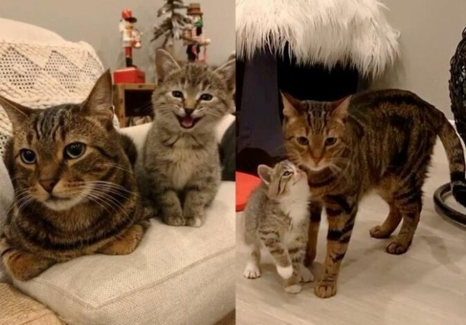 Gdy tylko do domu dostały się pierwsze odoptowane kocięta, kot szedł je zobaczyć. A potem kłądł się obok nich i zaczynął lizać każde młode. I robił to delikatnie i umiejętnie jak prawdziwa matka-kot.