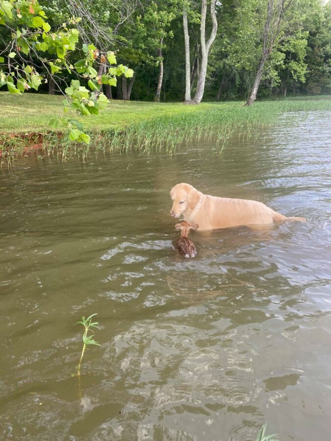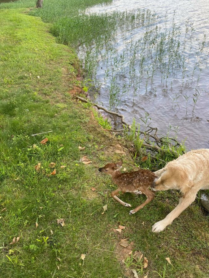 Harley pomógł małemu jeleniu wydostać się na brzeg