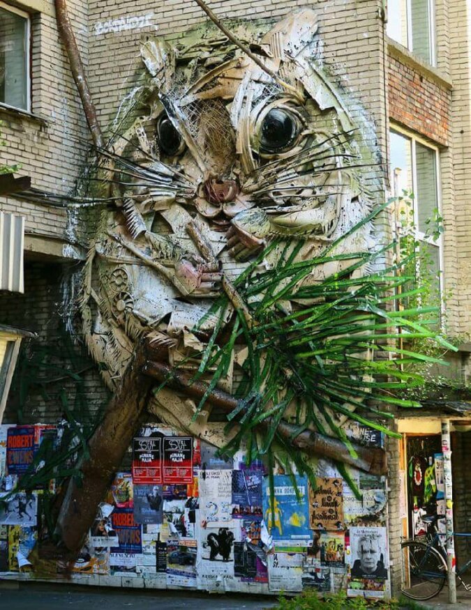 Aby zwrócić uwagę na problem niekończącego się zanieczyszczenia środowiska, portugalski artysta uliczny Bordalo II (Artur Bordalo) tworzy niesamowite rzeźby zwierząt. W przeciwieństwie do innych ludzi sztuki nie kupuje materiałów do swoich prac, odnajduje je wśród śmieci. Artysta stara się przedstawiać zwierzęta z tego, co zagraża ich zdrowiu. Jest odważny, zdeterminowany i przekonany do walki. Jego najnowsze prace znajdują się w Estonii i USA. Życzmy mu dobrze i rzućmy okiem na jego śmieciowe arcydzieła.