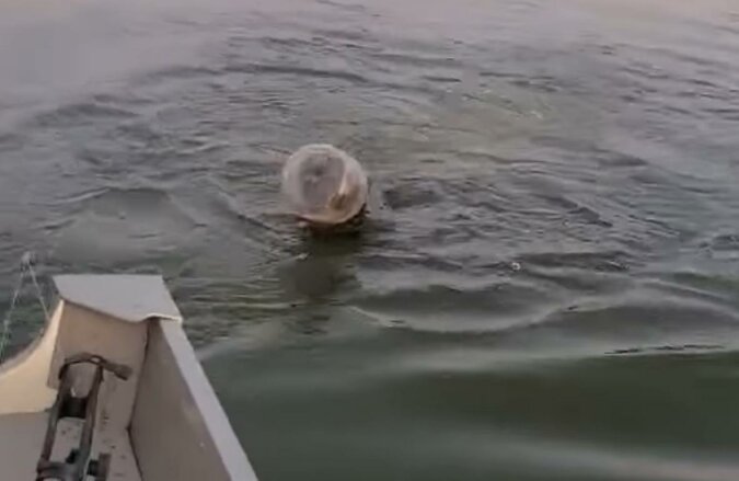 Na szczęście wszystko poszło dobrze. Chociaż niedźwiedź ciągle chciał uciec od nadciągającej łodzi, ludzie go dogonili. Było kilka nieudanych prób uwolnienia go, ale w końcu niedźwiedź został uwolniony z plastikowej pułapki i zwierzę szybko odpłynęło, nawet nie patrząc na swoich ratowników.