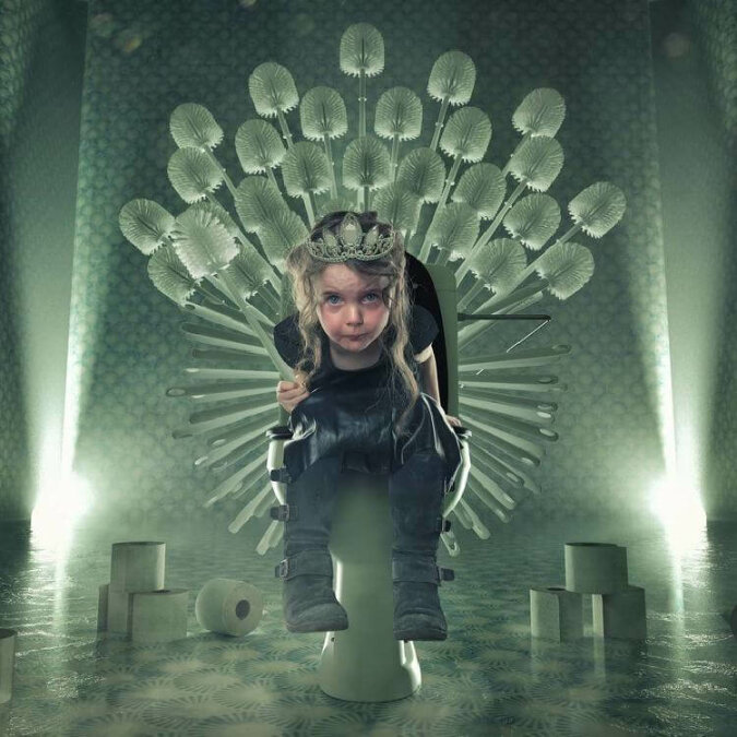 Należy zauważyć, że fotograf jest w pełni kreatywny nie tylko w stosunku do zdjęć córek. Wszystkie bez wyjątku jego fotografie są bardzo oryginalne i bawią nie gorzej niż ciekawa komedia.