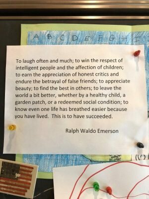 „Śmiać się tak często i serdecznie, jak to możliwe; żyć w taki sposób, aby mędrcy cię szanowali, a dzieci uwielbiały; zdobyć uznanie uczciwych krytyków i odważnie przetrwać zdradę fałszywych przyjaciół; docenić prawdziwe piękno; dostrzec to, co najlepsze w innych. Opuścić ten świat, czyniąc go trochę lepszym; niech będzie to zdrowe dziecko, które mu dasz; lub kawałek ziemi, który zmieniłeś; lub inny dobry uczynek. Wiedzieć, że dzięki tobie przynajmniej jednej osobie jest łatwiej żyć na tej Ziemi – właśnie to oznacza naprawdę odnieść sukces w tym życiu”, - Ralph Waldo Emerson.