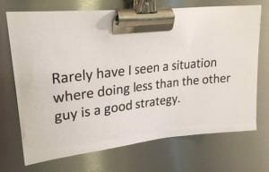 „Nigdy nie spotkałem się z sytuacją, w której robienie mniej niż inni byłoby dobrą strategią”.