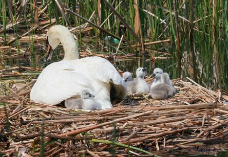 Rodzina łabędzi stała się lokalnym punktem orientacyjnym. Każdy chciał popatrzeć na piskląt i zobaczyć, jak łabędzie opiekują się młodymi.