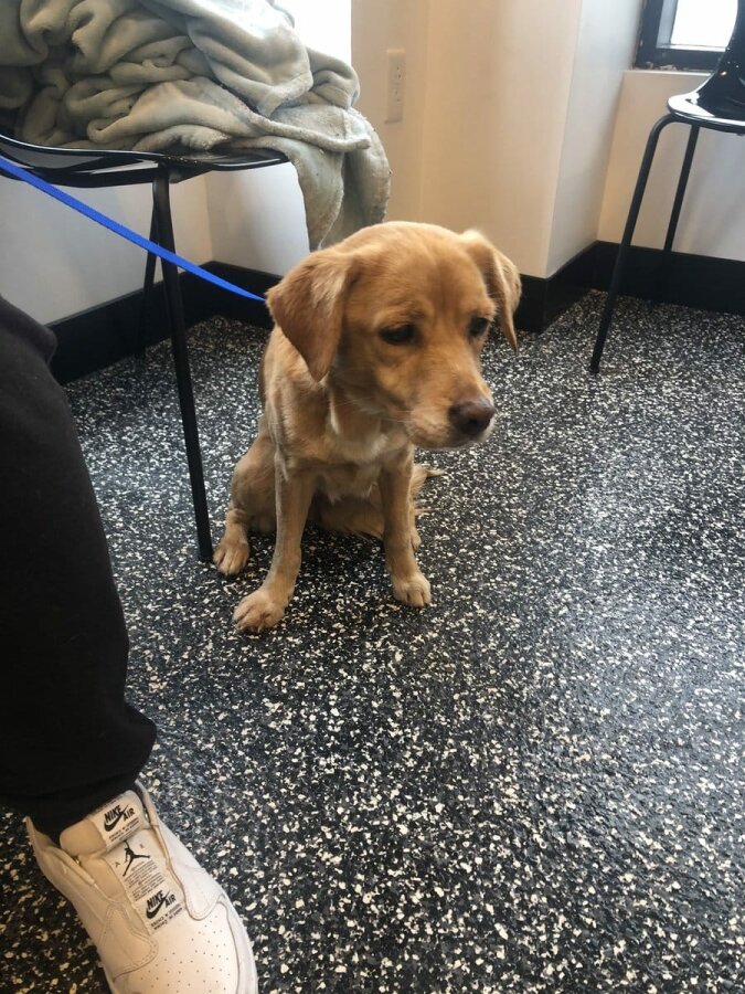 Weterynarz zbadał „znalezisko”. Okazało się, że pies jest zdrowy, ma około 9 lat, długo błąkał się i nie otrzymywał niezbędnej jak na swój wiek opieki.