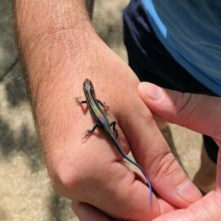 Scynk z niebieskim ogonem, którego uratowałem przed psami.