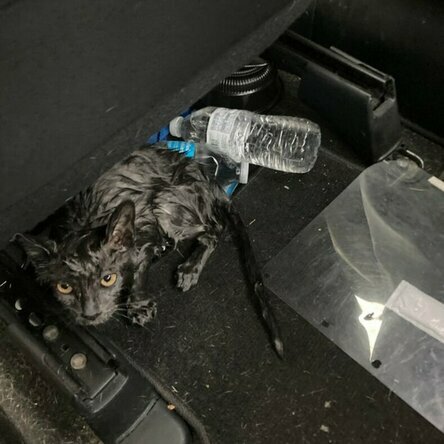 Uratował kota na autostradzie, który omal nie został przejechany przez koła samochodu. Zatrzymał się i zabrał go ze sobą.