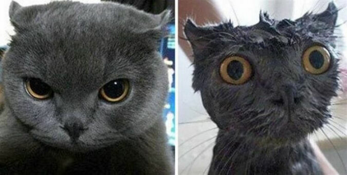 Do kąpieli bierzesz pięknego, puszystego i dumnego kota, a już po okazuje się coś dziwnie niezrozumiałego. Na dodatek jest obrażony i długo żywi urazę.