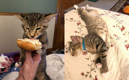 Okazało się, że Aslan nie miał problemów z czterema uszami. Ale było co innego, a mianowicie to czego wcale się nie spodziewano. Kot po prostu uwielbia jeść wszystko, co widzi. Nie ma znaczenia, czy jest to karma dla kotów, karma dla psów czy nawet zwykłe ludzkie jedzenie. Najgorsze jest to, że je tak energicznie, że pozostawia po sobie straszny bałagan. Jednak 41-letnia Amerykanka jest gotowa się z tym pogodzić, ponieważ w innych kwestiach kot jest małym aniołkiem.