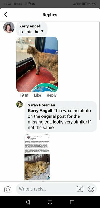 Wkrótce Tash otrzymała pierwszą wiadomość: pewna Kerry Angell zobaczyła podobną kotkę w miejskim autobusie. Uznała to za zabawne i zrobiła kilka zdjęć futrzanej podróżniczki. Następnie Tash zaczęła otrzymywać wiadomości od różnych osób, zgodnie z którymi właścicielka była w stanie ułożyć historię zniknięcia PS.