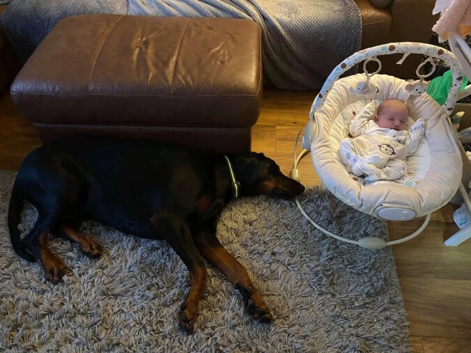 Mimo obaw młodych rodziców, ich zwierzak nie tylko zaakceptował noworodka, ale stał się dla dziewczynki idealną nianią. Jak wzruszająco uspokaja dziecko!