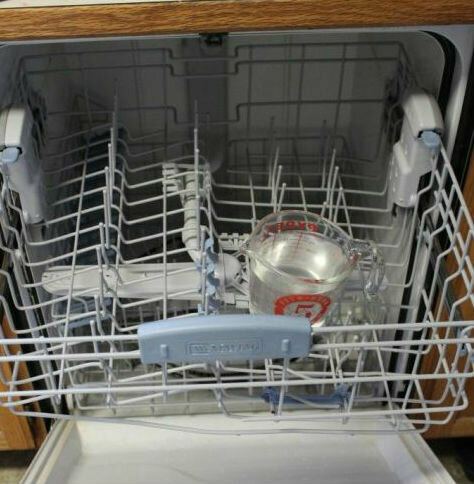 Żadne drogie tabletki nie są potrzebne. Uruchom pustą zmywarkę tylko z octem na pełny cykl zmywania. To wszystko. Najtańszy ocet można zrobić z esencji octu.