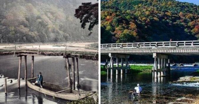 2. Most Togetsu w Japonii w 1870 roku i obecnie
