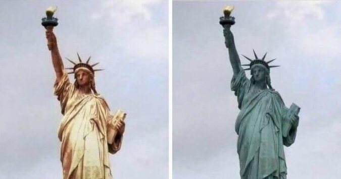 13. Jak wyglądała Statua Wolności, gdy została przywieziona do USA, a jak wygląda teraz