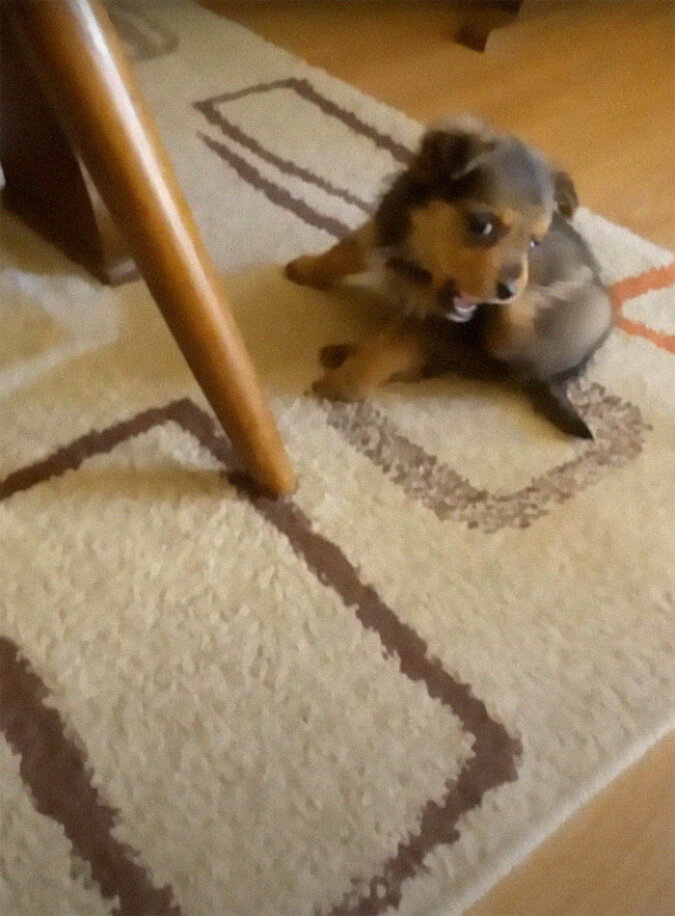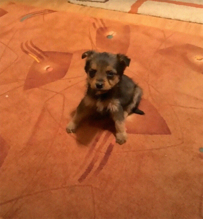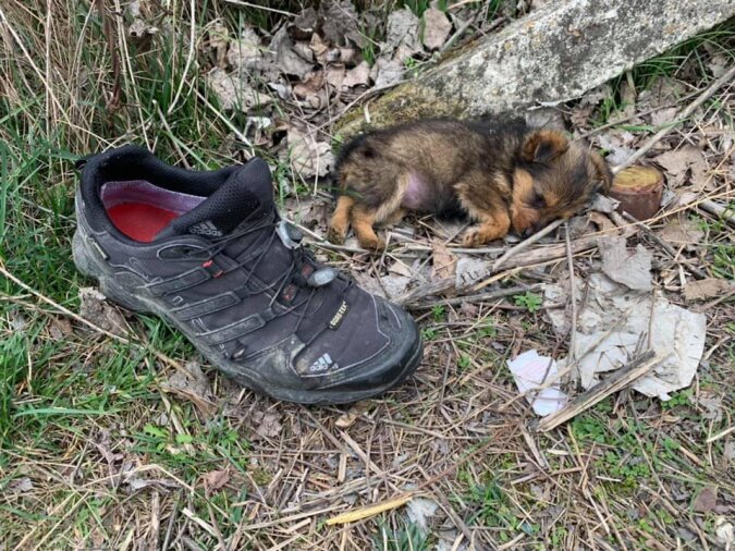 W marcu zeszłego roku, jak zwykle, przyszedł z jedzeniem dla swoich podopiecznych i przypadkowo zobaczył w oddali coś małego. Goran podszedł bliżej i zobaczył maleńkiego szczeniaka. Szczeniak wyglądał bardzo kiepsko, chudy, wyczerpany, z zapaleniem oczu. Nawet nie uciekł, a leżał obok porzuconego buta, w którym najprawdopodobniej ukrywał się przed złą pogodą. Goran dał mu trochę jedzenia, a maleństwo bardzo szybko zjadło.
