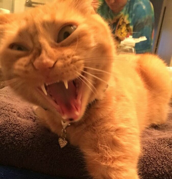 - Nie ziewam, pokazuję swoje mocne zęby.