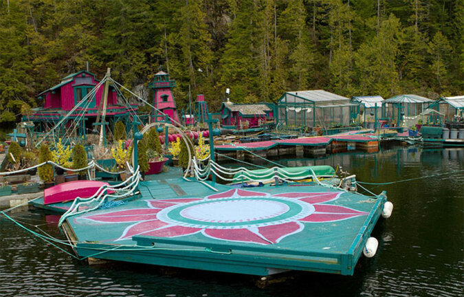 Ta pływająca forteca znajduje się w Kolumbii Brytyjskiej w Kanadzie. Według jej mieszkańców – małżonków Wayne Adams i Catherine King, życie tutaj jest po prostu cudowne. Nigdy nie zamieniliby swojego domu na mieszkanie w mieście.