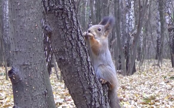 Zdesperowana matka poprosiła o pomoc mężczyznę, ale mężczyzna do tej pory o tym nie wiedział. Wiewiórka zaczęła skakać po gałęziach, zwracając na siebie uwagę.