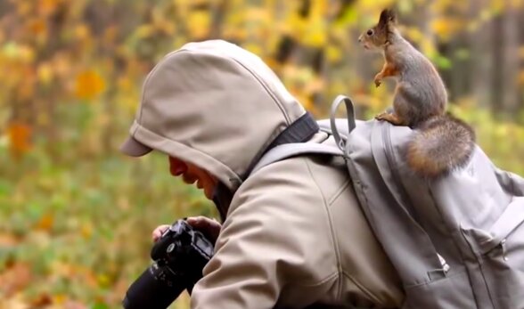 Wyobraź sobie jego zaskoczenie, gdy wiewiórka wskoczyła na jego broń i usiadła wygodniej. Początkowo myśliwy prawie rzucił broń ze zdziwienia, ale potem opanował emocje i zaczął patrzeć na zwierzę, które patrzyło na niego żałosnym spojrzeniem.