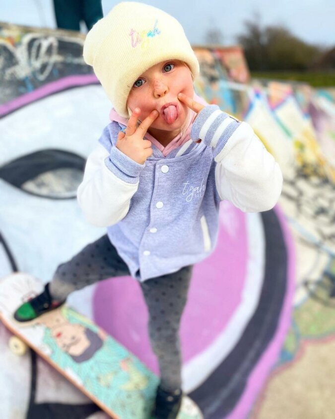 „Zaczęła jeździć na deskorolce mając 2.5 roku. Kiedy chodzimy do skateparków, większość ludzi ją rozpoznaje i jest to urocze – podchodzą by się przywitać i podziwiają jej umiejętności" - mówi mama Autumn, Tara.