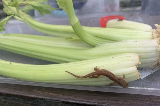 Później Phillipowi udało się dowiedzieć, że znalazł dla siebie wyjątkowego zwierzaka – traszek. Zwierzę w niewiadomy sposób dostało się do opakowania selera naciowego i przeżyło po sześciu dniach w lodówce. Teraz rodzina nadała małemu zwierzakowi imię Nigell, a właściciel domu planuje wypuścić traszkę do naturalnego środowiska, gdy tylko zrozumie dokładnie, gdzie zwierzę będzie dobrze się czuło.